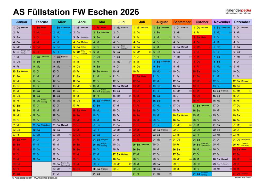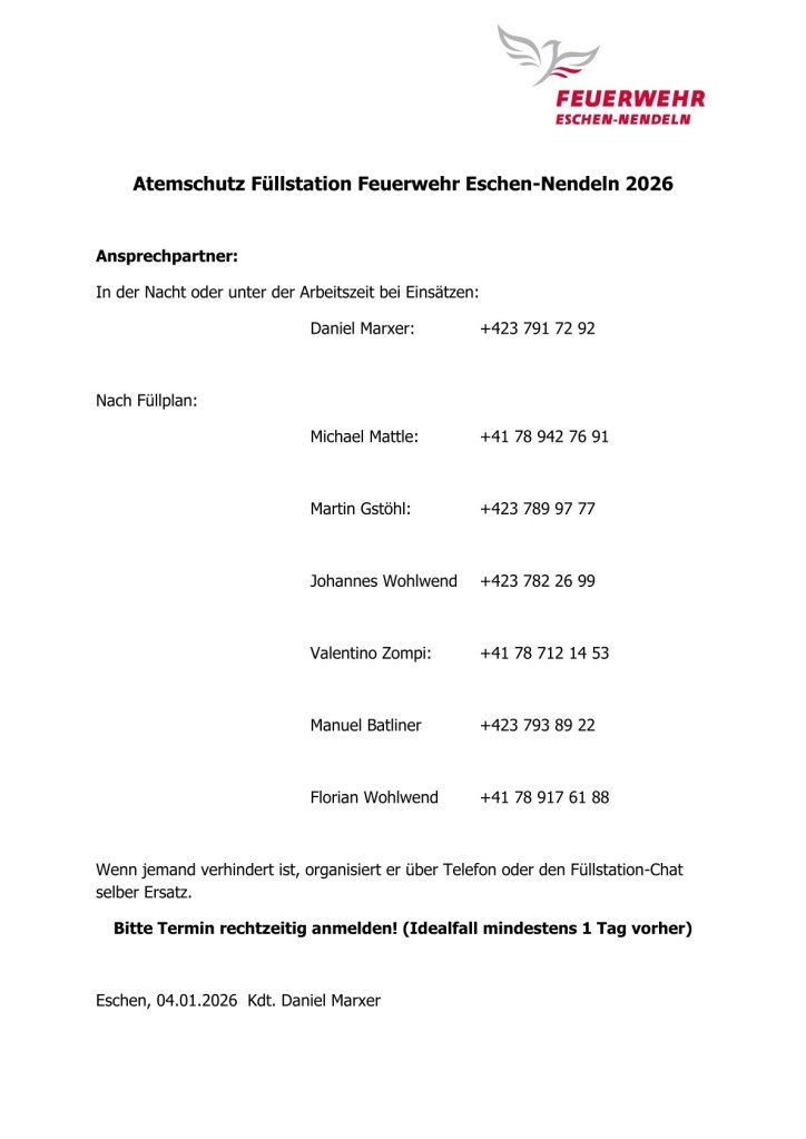 Die zuständigen Personen um die leeren Atemschutzflaschen zu befüllen können dem untenstehenden Kalender entnommen werden.